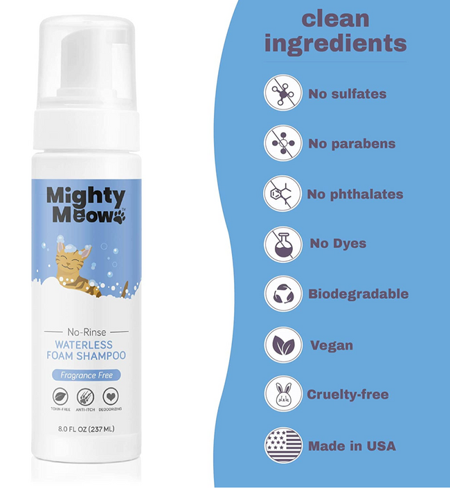 Waterless, No-Rinse Dry Shampoo Foam for Cats - Fragrance Free