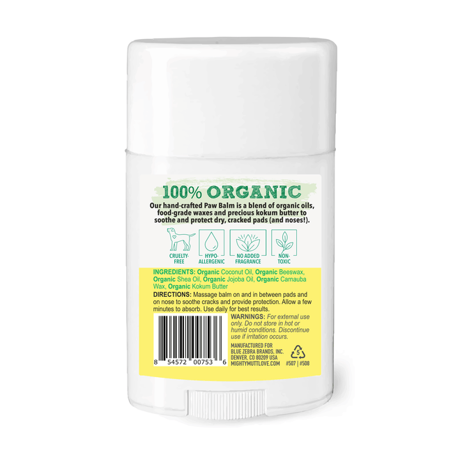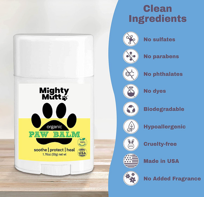 Made with organic oils and food-grade waxes, all lick-safe! 100% vegan, cruelty-free formula, made in USA. Free from sulfates, parabens, dyes, phthalates, and other toxins that are harmful to dogs.